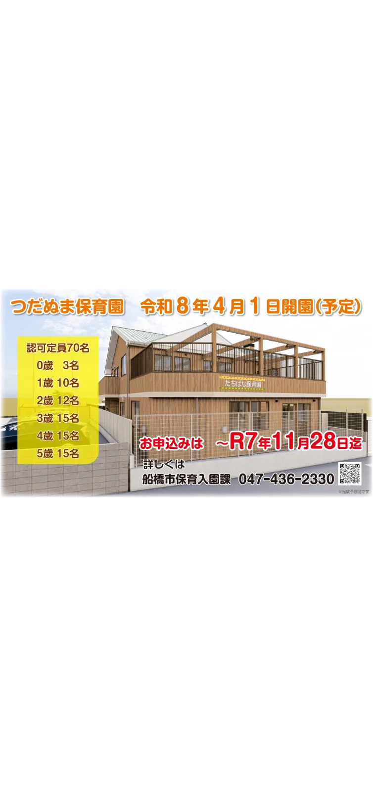 船橋市民間認可保育所等設置・運営事業者に選定される